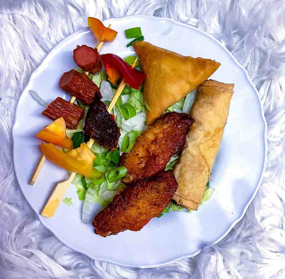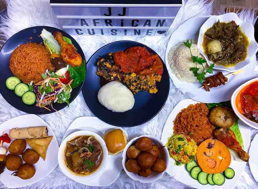 Yam, Chips, Plantain, Moi Moi, Chicken Wings, Lamb Chops.